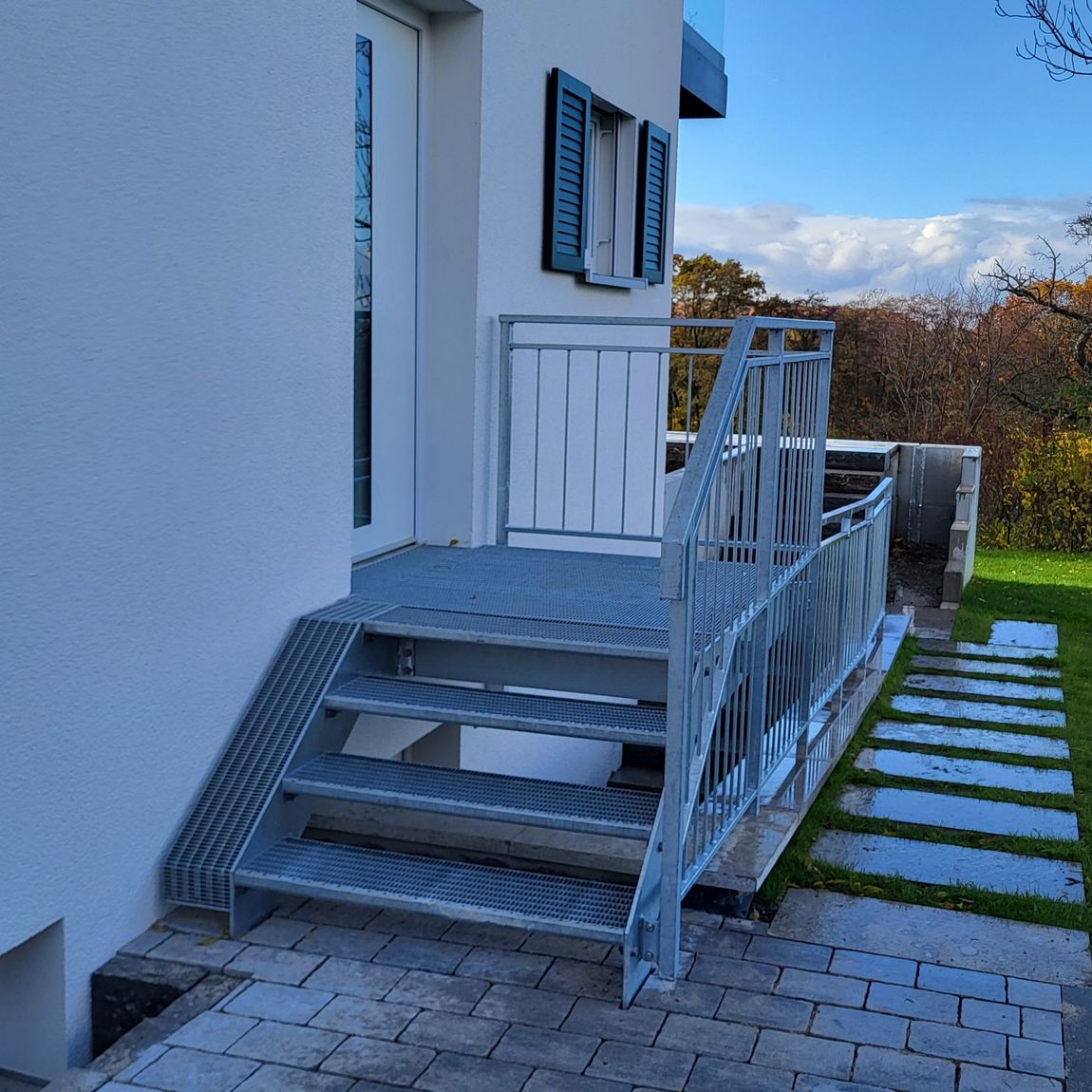 Wir entwerfen, konstruieren und montieren Metallbau-Komponenten nach Ihren Wünschen — ob Vordach, Balkon, Treppe, Geländer oder nur den Handlauf.